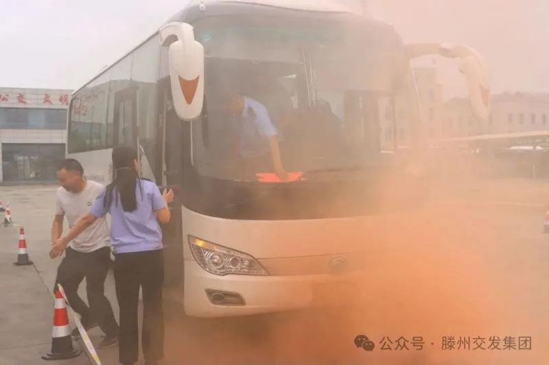 本次演練設(shè)置了“客運車輛爆胎事故應(yīng)急救援演練”“公交車危險品安檢處置演練”“公交車電池起火逃生應(yīng)急救援預(yù)案演練”和“水毀公路防汛搶險救援演練”四個科目。