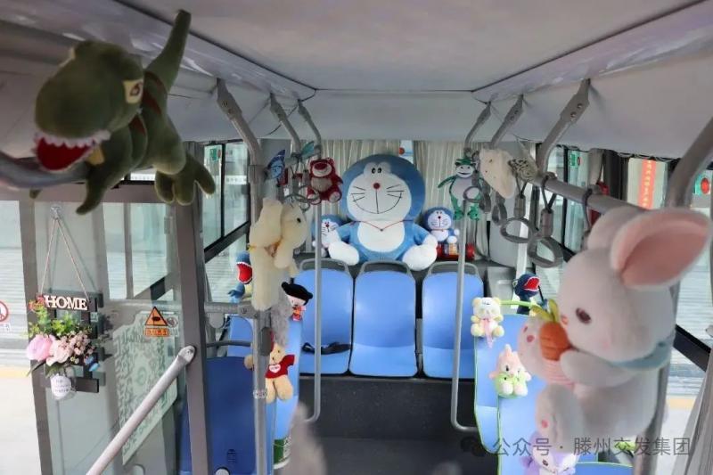 走進(jìn)車廂,童趣與溫馨撲面而來。駕駛員師傅們精心布置的細(xì)節(jié)隨處可見。扶手被毛茸茸的小熊、小貓玩偶溫柔環(huán)繞,乘客抬手抓握時(shí)便能觸到柔軟。