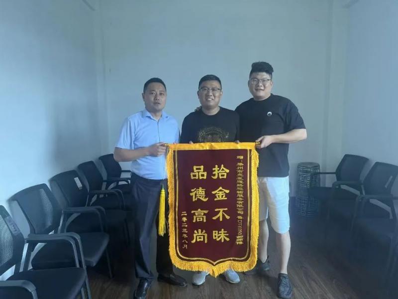 8月23日上午,市民高先生將一面印有“拾金不昧 品德高尚”的錦旗送到交發(fā)集團道服公司,向出租車駕駛員郝元陽師傅表示感謝。